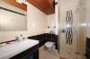 Koupelna. Sprchový kout, WC, umyvadlo, odkládací poličky